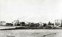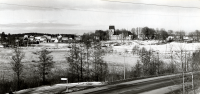 Vallentuna kyrka och Prästgårdsgärdet sett från Allévägen
