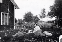 Kökspersonalen samlad vid bröllop på Granby gård i Össeby-Garn