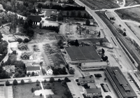 över Vallentunas centrala delar och byggnadsarbeten på Åby gärde