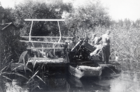 Skördearbete av vass med båt