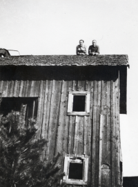 Maria Josefina Lindström vid stugan i Frösunda