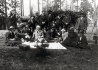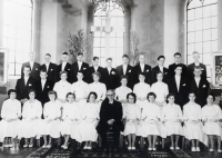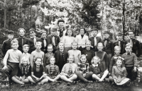 Vallentuna småskola. Skolfotografi utanför kyrkan