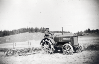 Hemrik Oldeskog harvar med traktor på Tjusta gård i Märsta