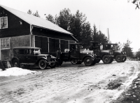 Bilar utanför Helge Anderssons garage i Skrattbacken, Markim