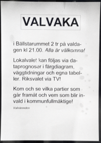 Valvaka 1994. Affisch på dörren till Vallentuna kommunalhus