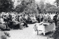 Gunnar Sträng talar vid Arbetarekommunens 50-års jubileum