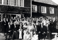 Familjen Berggren samlad vid Gamla stugan i Bäcken, Vada