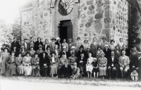 Lärare på hembygdskurs fotograferade vid Vallentuna kyrka