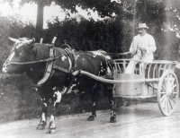 Julius Eriksson från Ösbyhof i Össeby-Garn har spänt tjuren framför vagnen