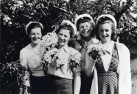Tre flickor från Kårsta på Rimbo marknad i slutet av 1930-talet