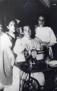 Maria Widén med döttrarna vid symaskinen i Sjöberg, Frösunda