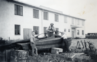 Båtarbete utanför Vallentuna möbelindustri på Banvägen