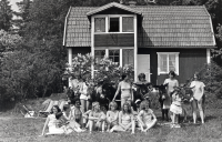 Familjen Sundborg framför Åbydal vid Lingsbergsvägen i Vallentuna
