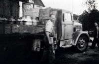 Alstermarks åkeri. Nils och Rune Alstermark lastar vid Lovisedal i Vada