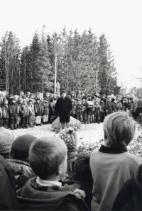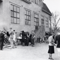 Lärare och skolbarn vid Markim-Orkesta folkskola