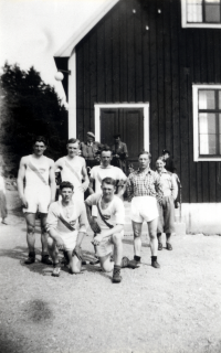 Medlemmar i Markims idrottsklubb utanför församlingshuset i Markim