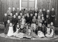 Lärarinnan Maria Nyberg med barnen i Kårsta kyrkskola