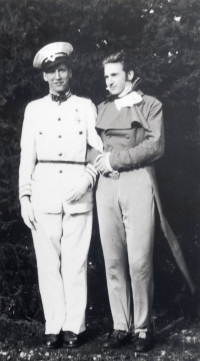 Plåtslagare Bertil Bobert och hans hustru Greta vid Vallentuna kyrka
