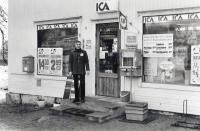 Frösunda handel. Innehavaren Arne Westberg står på trappan