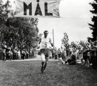 Sture Karlsson från Brottby i mål vid Ärlaloppet 12 km landsväg