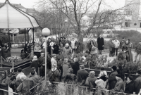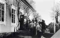Kyrkoval 1994. Kö vid ingången till vallokalen i Klockargården
