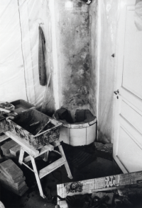 Kakelugnen repareras i Björkhaga, Lingsberg i Vallentuna