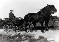 Karl Singman med häst och vagn vid Väsby storgård i Össeby-Garn