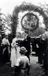 Magda Brunnberg och Carl Otto Glassel vid bröllopsfesten i Björkhaga