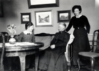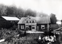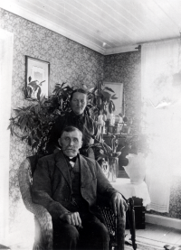 Selma Andersdotter och kyrkogårdsarbetaren Bäck utanför Fågelsången