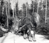 Åkare Elis Hedlund med hästen Rulard i skogen vid Gävsjövägen