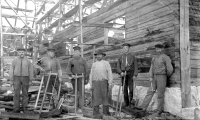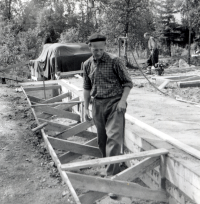 Villabygge på Norrängsvägen 5. Bengt Gustafson inspekterar gjutformen