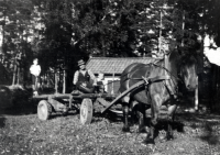 Åkare Elis Hedlund med häst och vagn vid Kristineberg