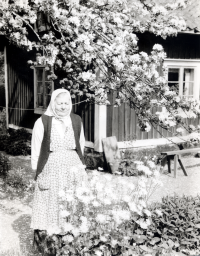 Lydia Eriksson i trädgården vid Sigridsborg bakom Gillberga i Lilla Garn