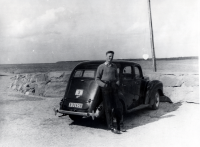 Arne Johansson vid familjens Ford Prefect i Öregrund