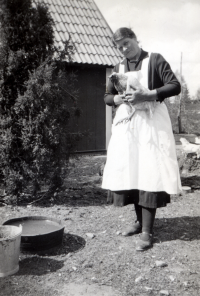 Anna Pettersson i hönshuset vid Sigridslund i Ormsta