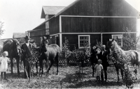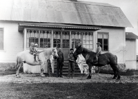 Rävsta gård i Angarn. Gustav Johansson med dräng v isar gårdens hästar