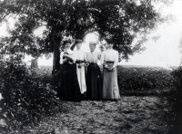 Fyra damer i Väsby gårds trädgård
