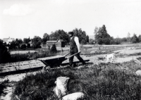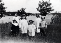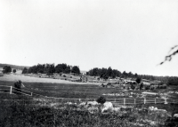Barn från Väsby gård vid Kullen. I bakgrunden syns Vallentunasjön