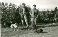 Rosa och Hugo Bergqvist i trädgården utanför Gunby