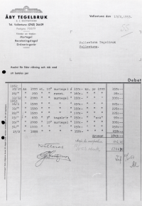 Räkning från Åby tegelbruk till Vallentuna tegelbruk