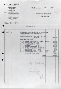 Räkning från K. E. Karlsson till Vallentuna tegelbruk