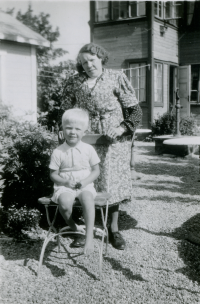 Olga Axén och brorsonen Bengt vid Angarns café