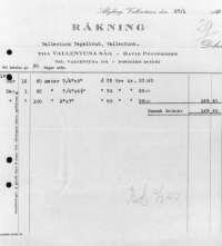 Räkning från Vallentuna såg till Vallentuna tegelbruk