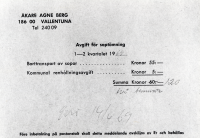 Åkare Agne Berg. Faktura för sophämtning