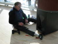 Erold Sandqvist justerar kvarnmodellen