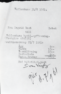 Vallentuna kyrkliga syförening. Faktura
