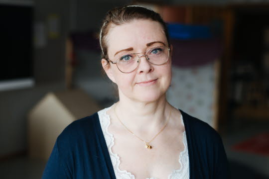 – Jag arbetar på avdelningen Nyckelpigan. Här går förskolans yngsta barn. Det har varit viktigt för mig att få arbeta med KASAM – känslan av sammanhang. Utanför Nyckelpigans avdelning finns en tavla för varje läsår där varje barn som gått på Nyckelpigan har fått sätta sina handavtryck. Meningen med tavlorna är att stärka känslan av att Nyckelpigan inte bara är något man passerar utan det är här man växer in i ett socialt sammanhang.